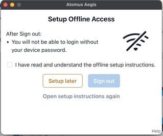 What you see: Offline setup required in the MFA section of the Aegis app.