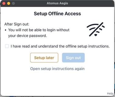 Alert 2: Offline Setup — "Setup Offline Access"