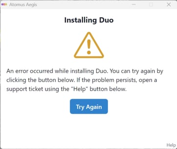 What you see: "An error occurred while installing Duo..."