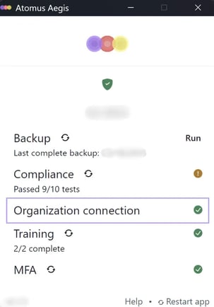 To further check the device’s joined status, launch the Aegis application and verify the Organizational Connection has a green checkmark .